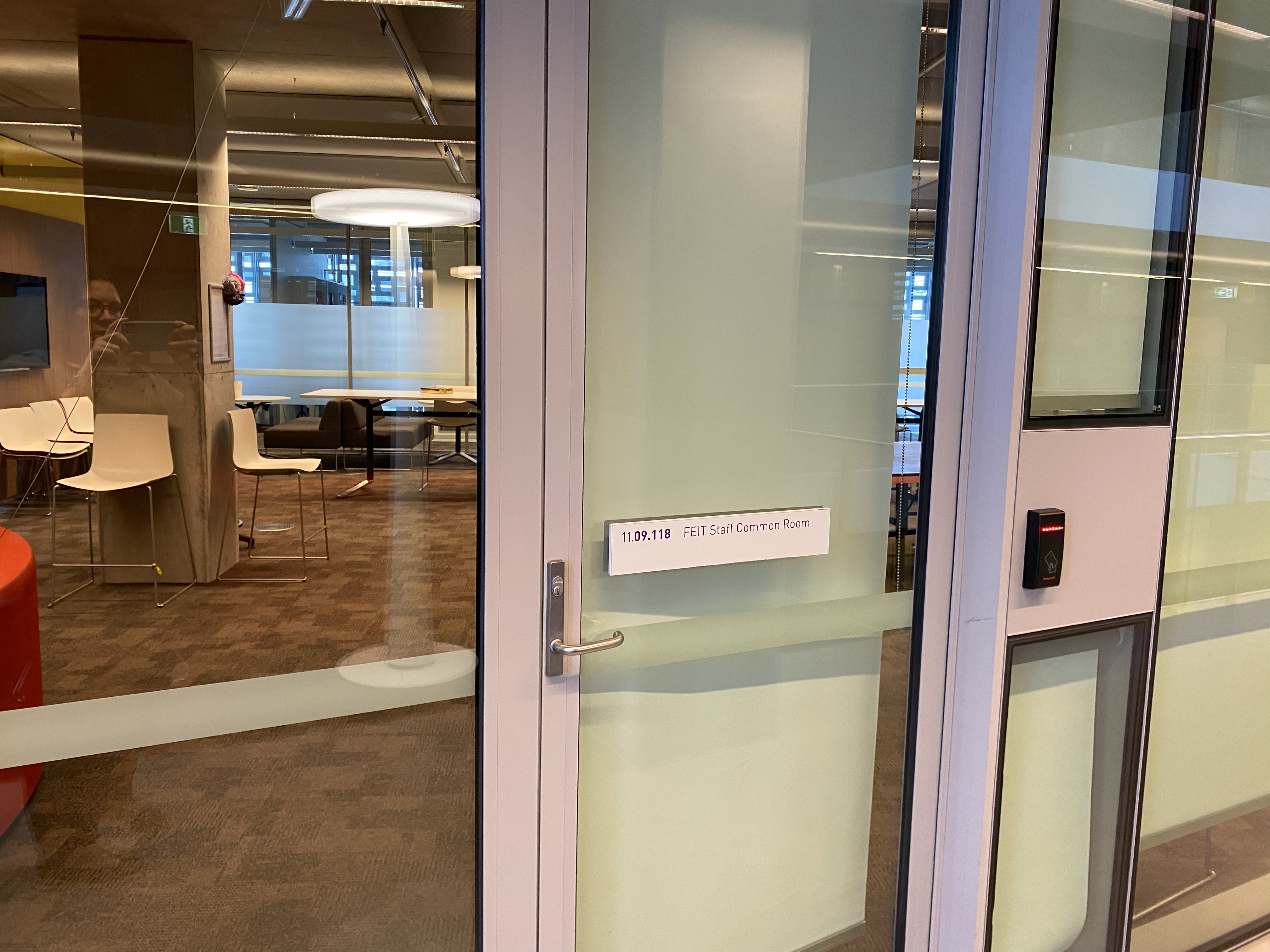 In Building 11 at UTS, take lift to level 11 and walk straight ahead. Look for large room with a ping pong table and kitchen with number 118.